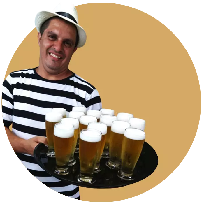 Contamos também com nossa equipe de garçons devidamente uniformizados, estilo botequim antigo. Todos os nossos funcionários, que nos acompanham desde a fundação de nossa empresa, são treinados por nós para um bom atendimento.